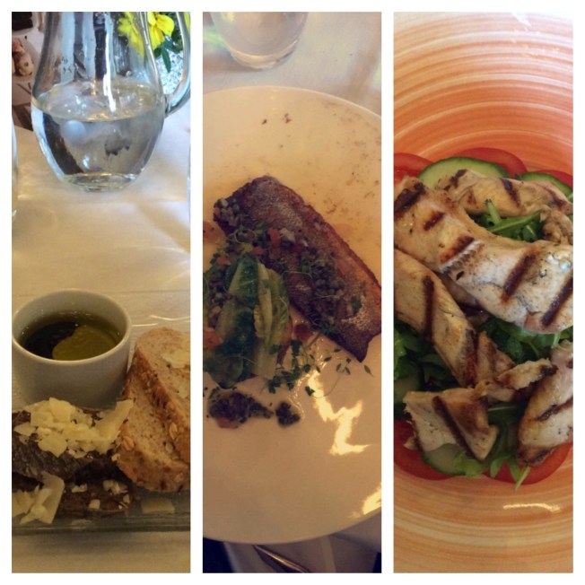 Lovely breads with Parmesan and olive oil with balsamic vinegar for dipping. Leah had sea bass. And me and Robyn had lemon chargrilled chicken. Dee-licious 😋