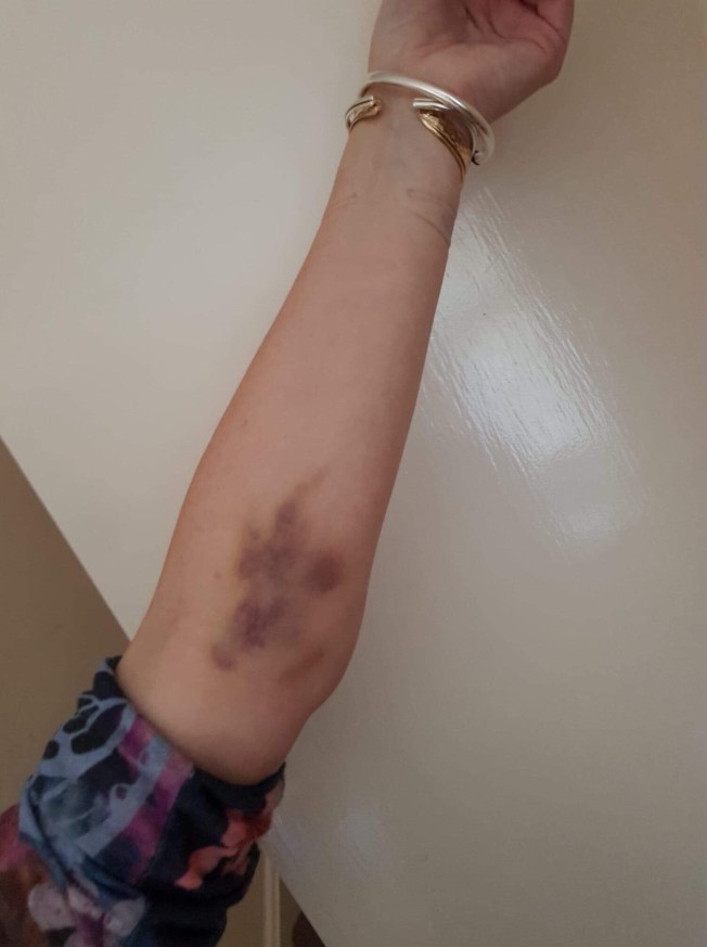 Look at my arm after the blood test I mentioned last week that really hurt and came up into a big hard lump. It’s still quite tender to touch too.