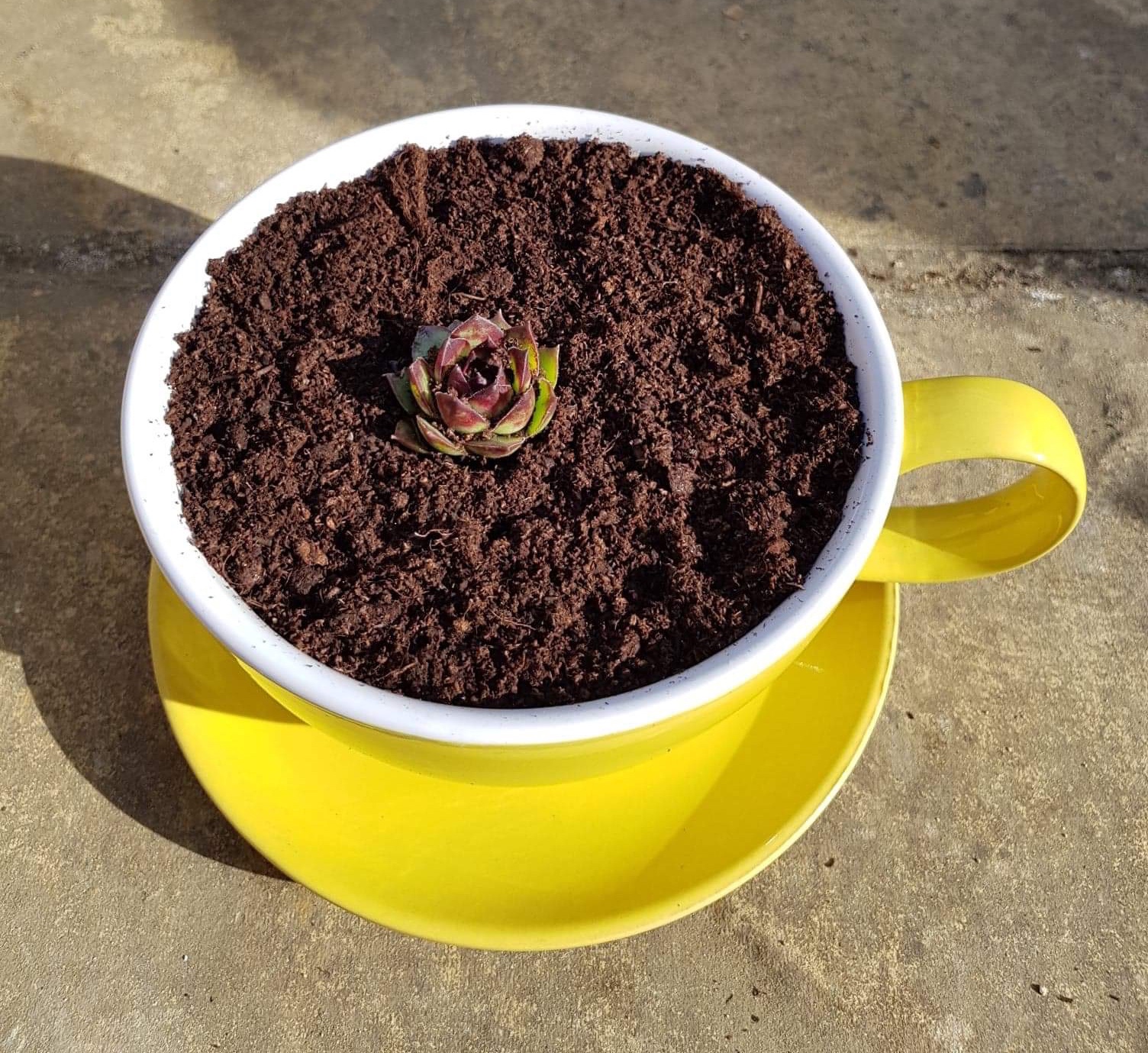 I wonder if they’ll do as well as the succulents in my lovely yellow teacup?!